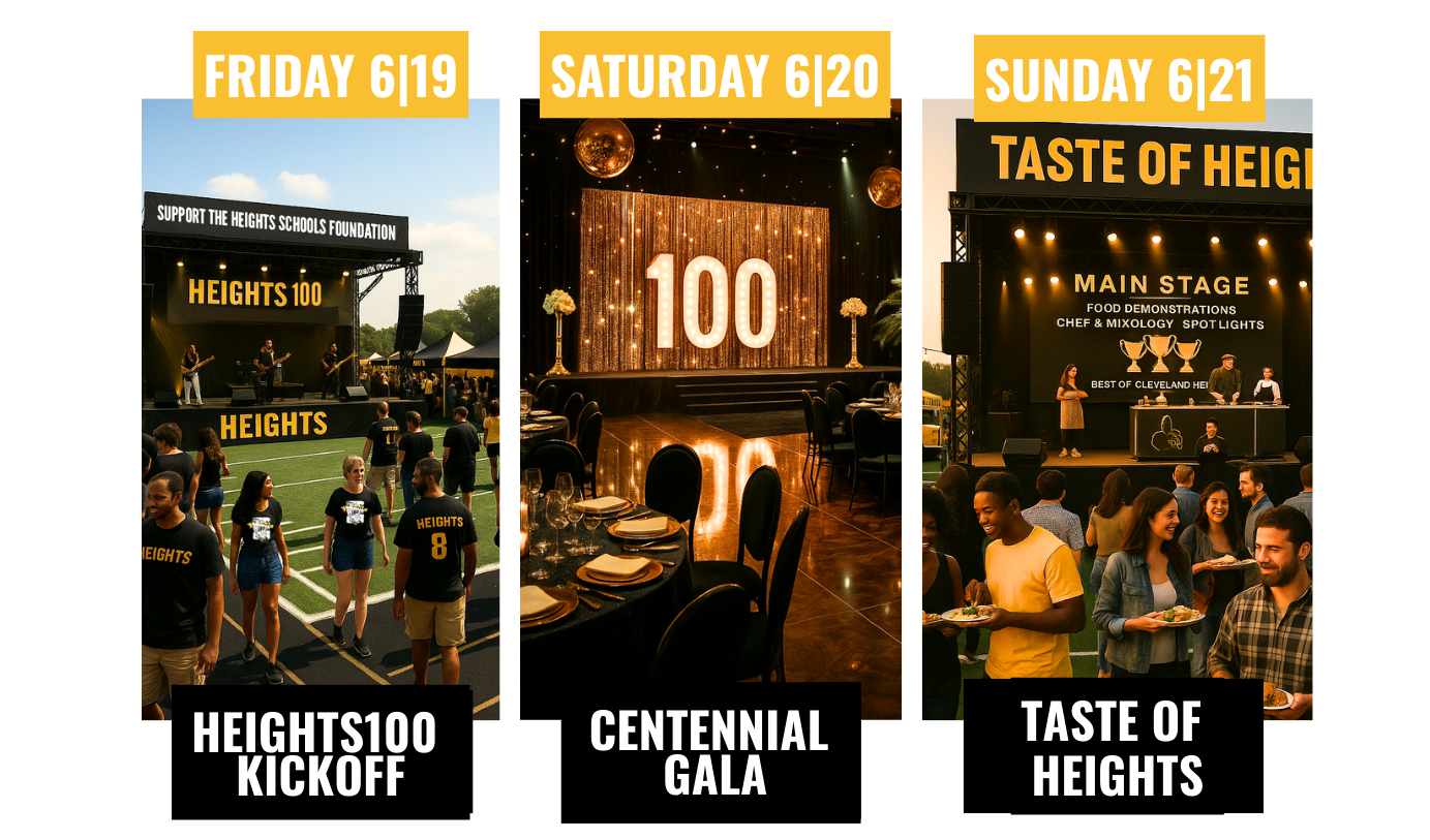 Three days. One legacy. A once-in-a-century celebration honoring 100 years of Cleveland Heights High School—featuring community events, an all-class reunion, an elegant gala, and a food & culture festival. Join us as we celebrate the past and fund the future.